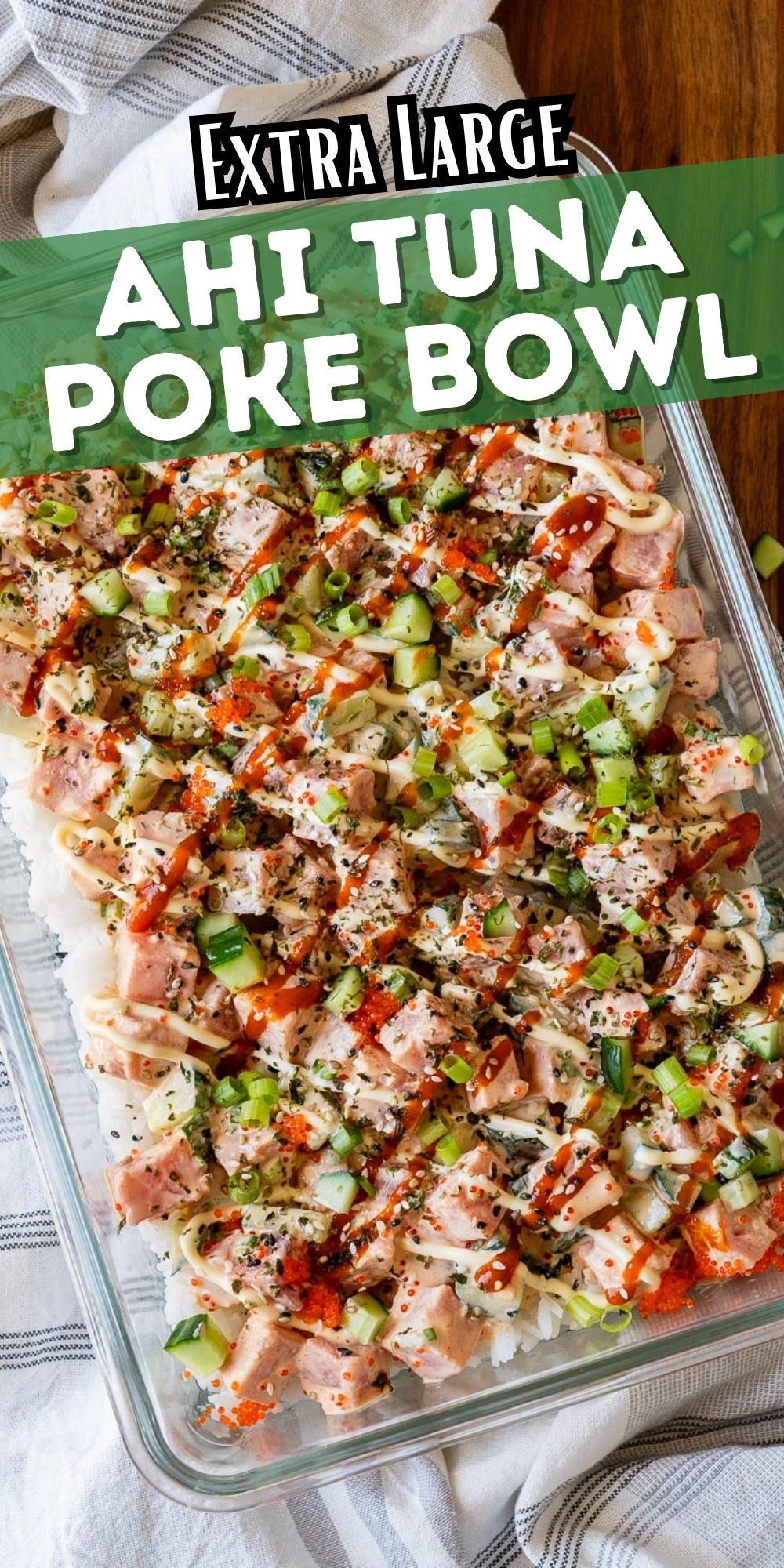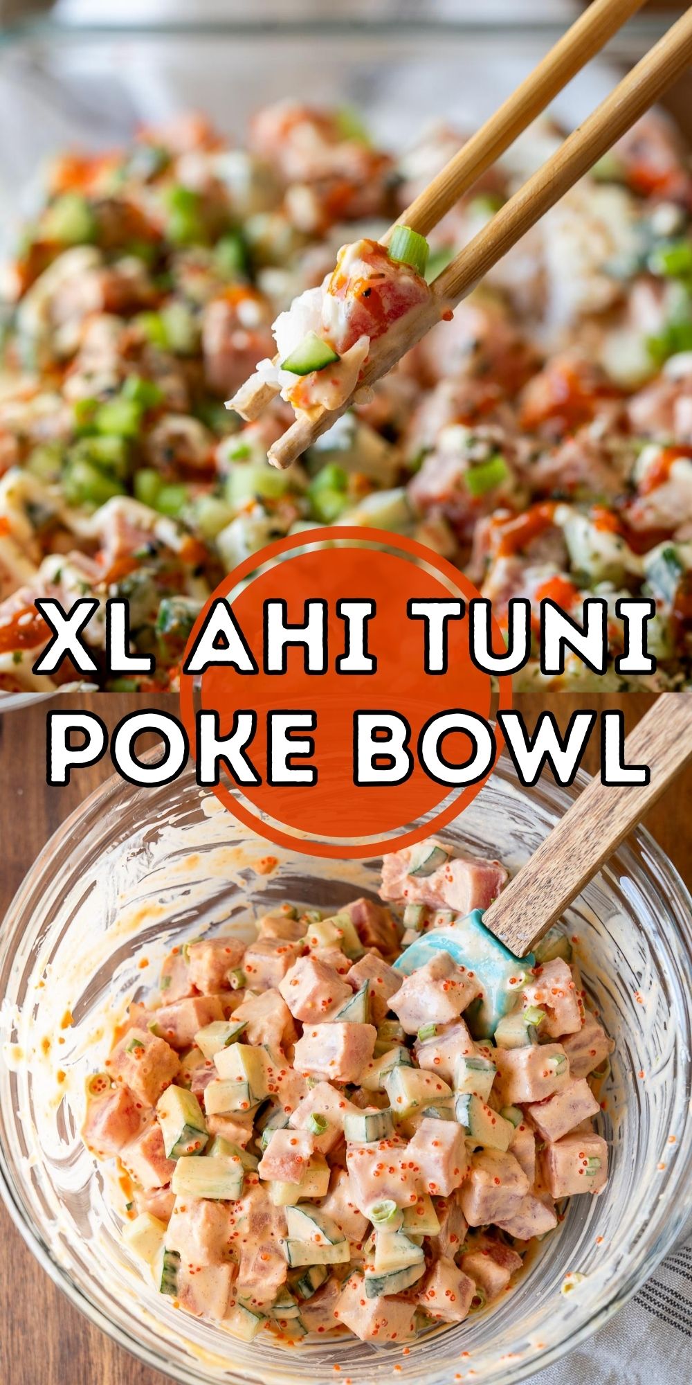 Kiekvienas šio „XL Ahi Tuna Poke Bowl“ recepto įkandimas yra kreminis, aštrus, traškus (dėka agurko) Ir „Mega Delicious“.