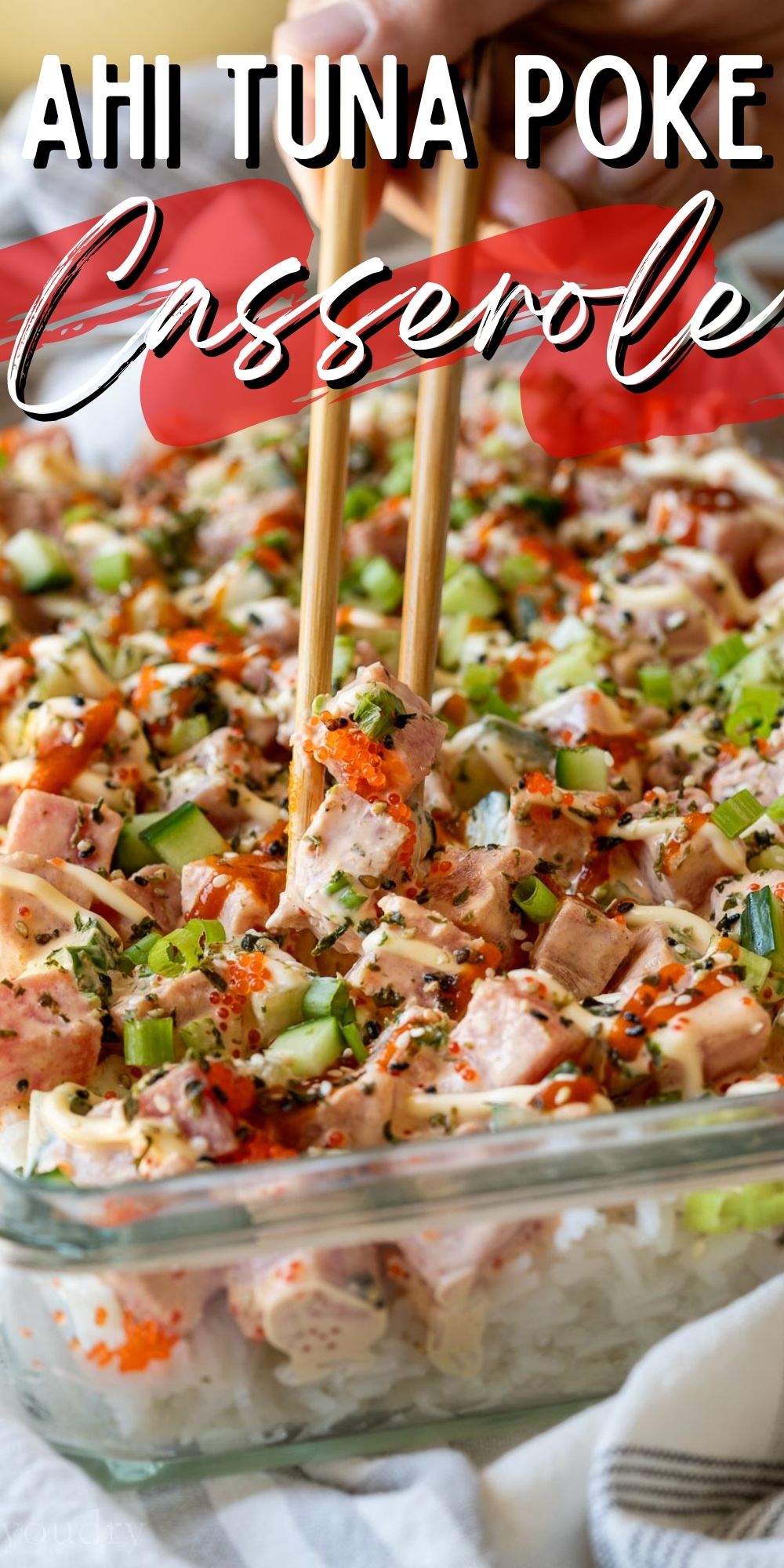 Nors aš šį receptą vadinu „Casserole“, tai iš tikrųjų nėra troškinimas. Žodis „Casserole“ man reiškia, kad tai keptas patiekalas, nors čia iš tikrųjų nėra kepimo. AHI tunas patiekiamas žalias*.