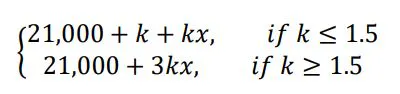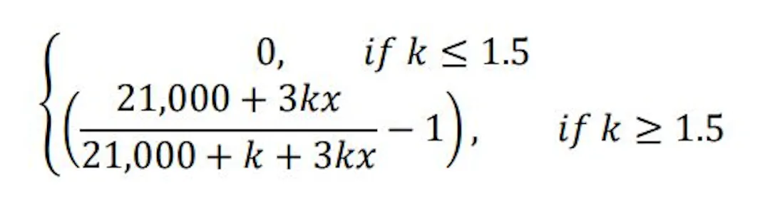 Under the current calculation (without EIP-7623), the cost would be 21,000+k+kx. Therefore, the rate of increase with EIP-7623 would be:
