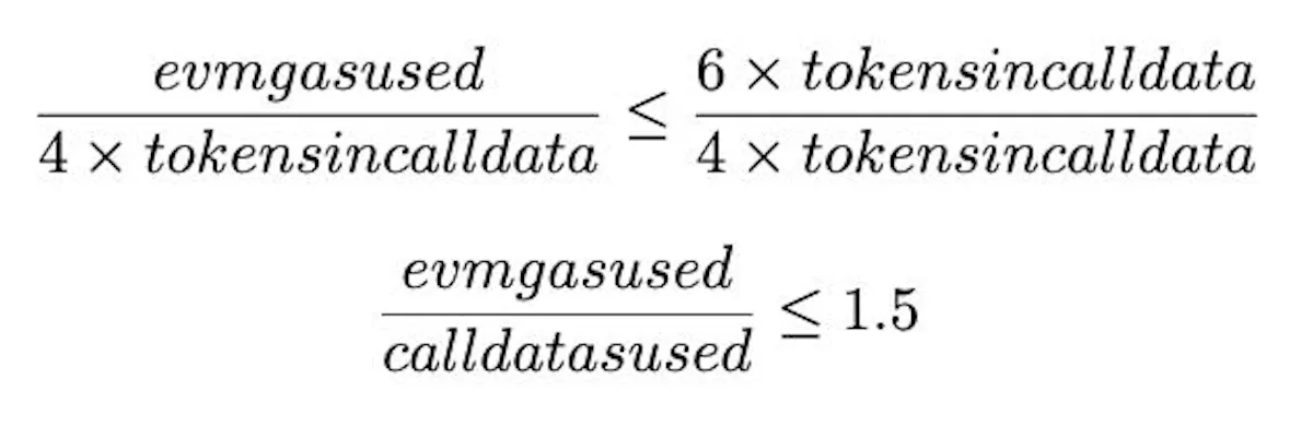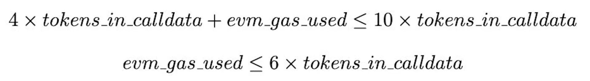 This final equation indicates that if the gas used for EVM execution is less than twice the gas used for calldata, the transaction will incur higher fees for calldata.