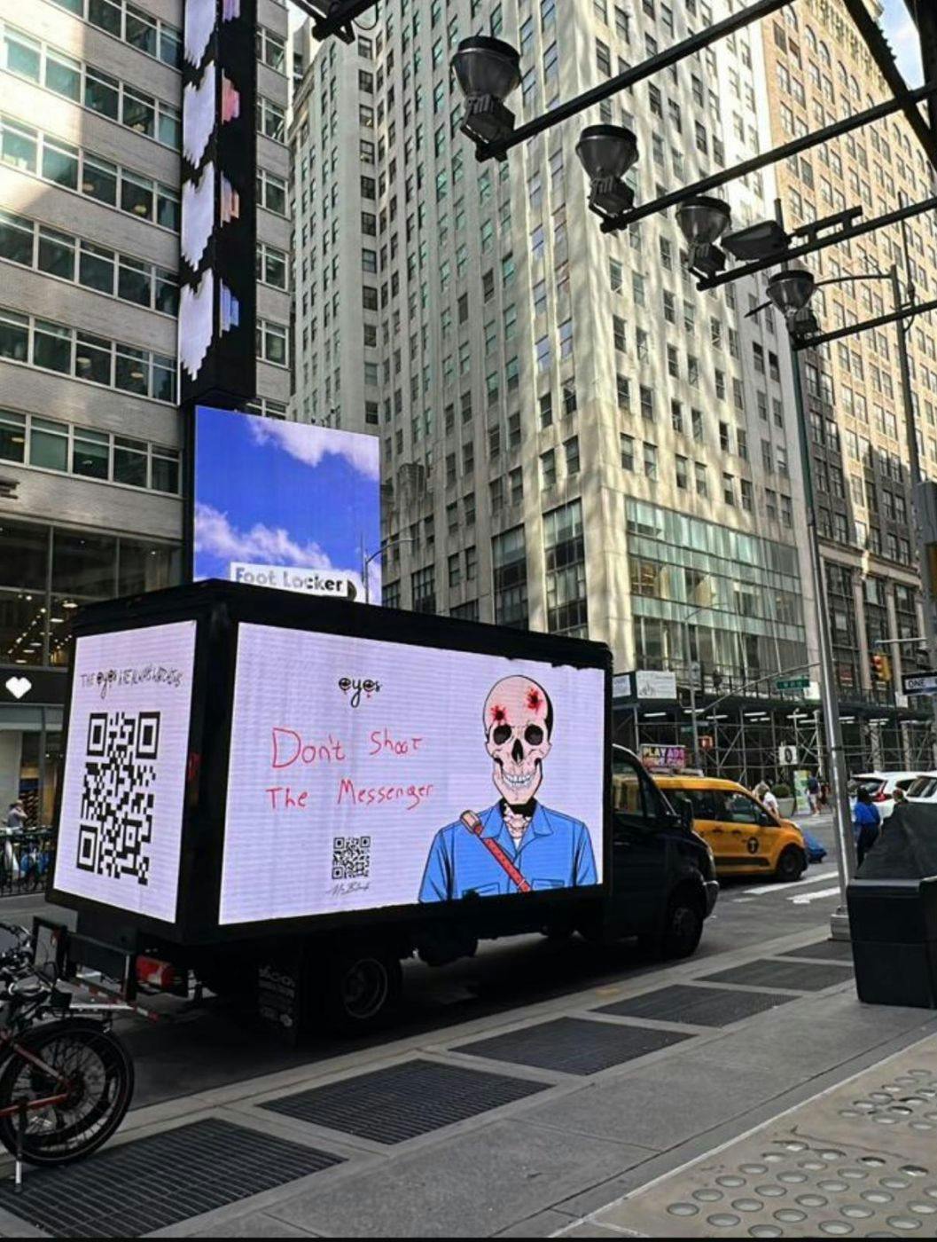 Prieš pasirodant šiems sunkvežimiams, J. Blacko plakatai ir lipdukai buvo pastebėti didžiuosiuose pasaulio miestuose, įskaitant Jeruzalę, Romą, Meksiką, Paryžių ir Tel Avivą. Kiekvienas meno kūrinys prisidėjo prie kito J. Blacko žingsnio laukimo.
