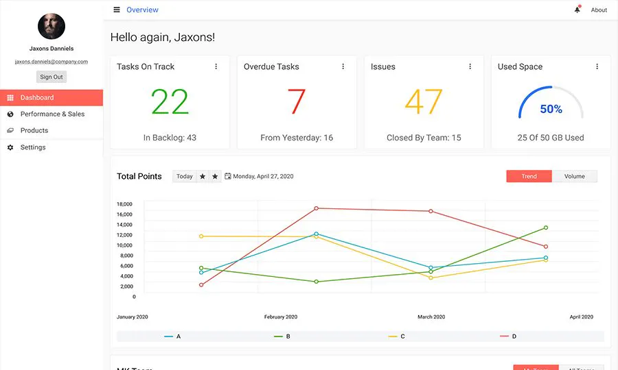 Deja, ši sistema nesiūlo išplėstinių komponentų, pvz., duomenų tinklelių ir diagramųtodėl tai nėra geriausias pasirinkimas sudėtingoms įmonės lygio programoms. Jei jūsų projektui reikia daug manipuliuoti duomenimis ir vizualizuoti, tame skyriuje to tikrai trūksta.