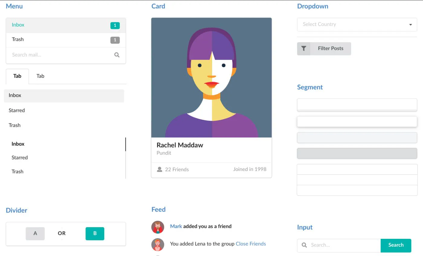 Viena didžiausių Semantic-UI privalumų yra galinga teminė sistema. Su per 3000 teminių kintamųjųgalite lengvai sukurti nuostabias „JavaScript“ svetaines ir pritaikyti nuoseklias temas visame projekte naudodami paveldėjimo sistemą.