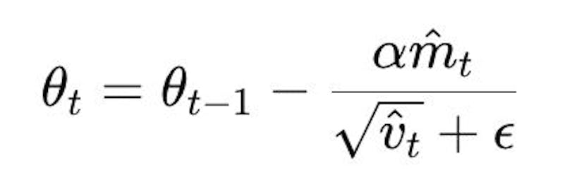 Štai puiki dalis: Adomas ištaiso paklaidas, kad užtikrintų tikslumą, ir atnaujina parametrus naudodamas šią formulę: